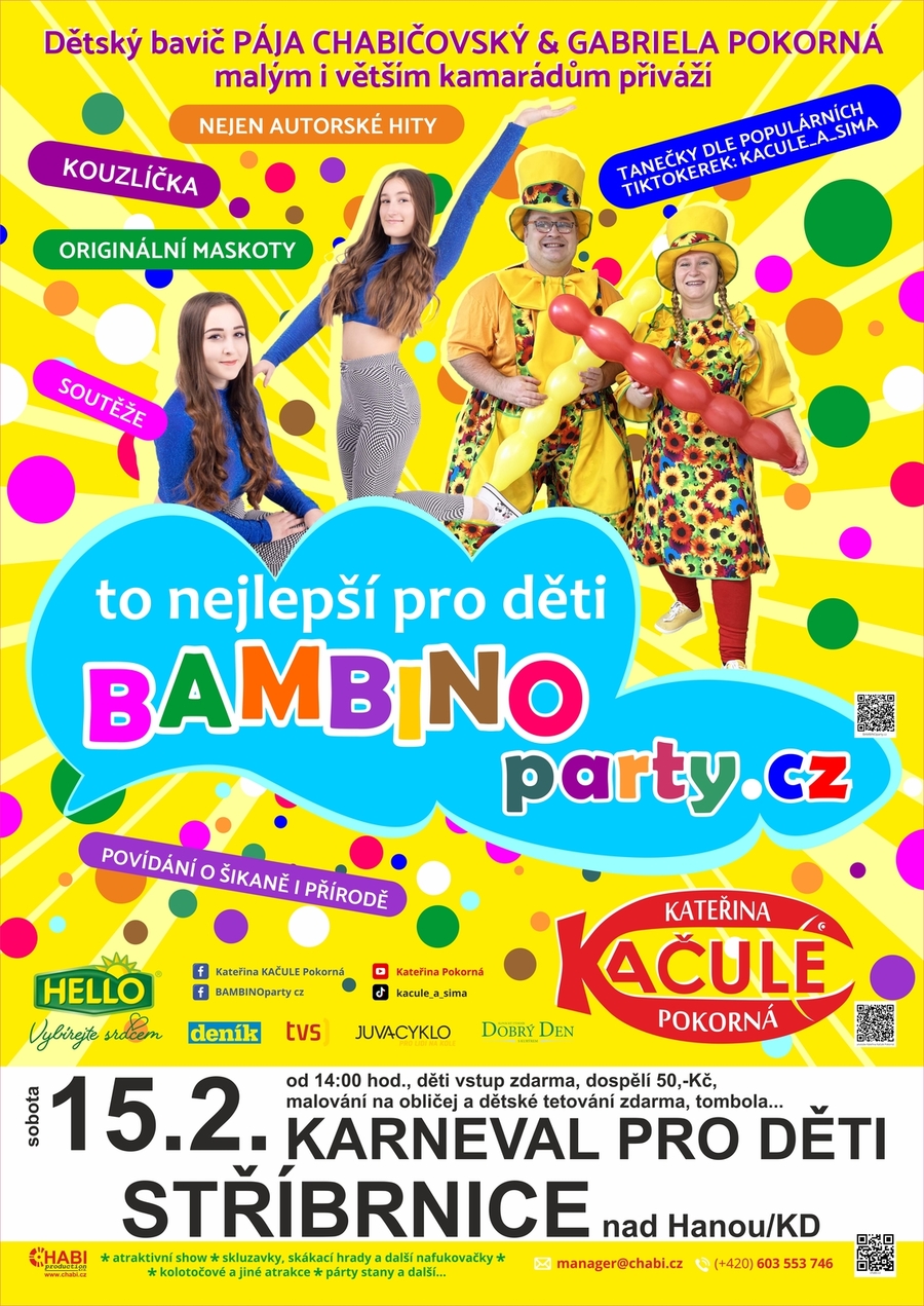 Úvod > Život v obci > Aktuality > Karneval Bambino party 2025 ve Stříbrnicích